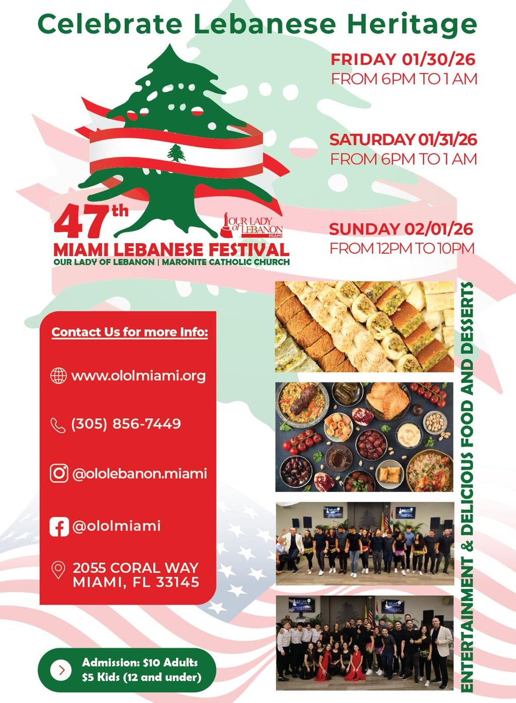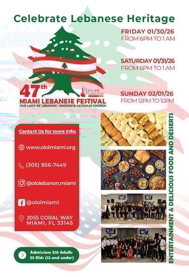The OLOL Miami Festival is the annual Lebanese Festival hosted by Our Lady of Lebanon Maronite Catholic Church in Miami. The festival is a celebration of Lebanese culture, music, food, and community, and it is a major event for the parish and the wider Miami area.Blog post description.